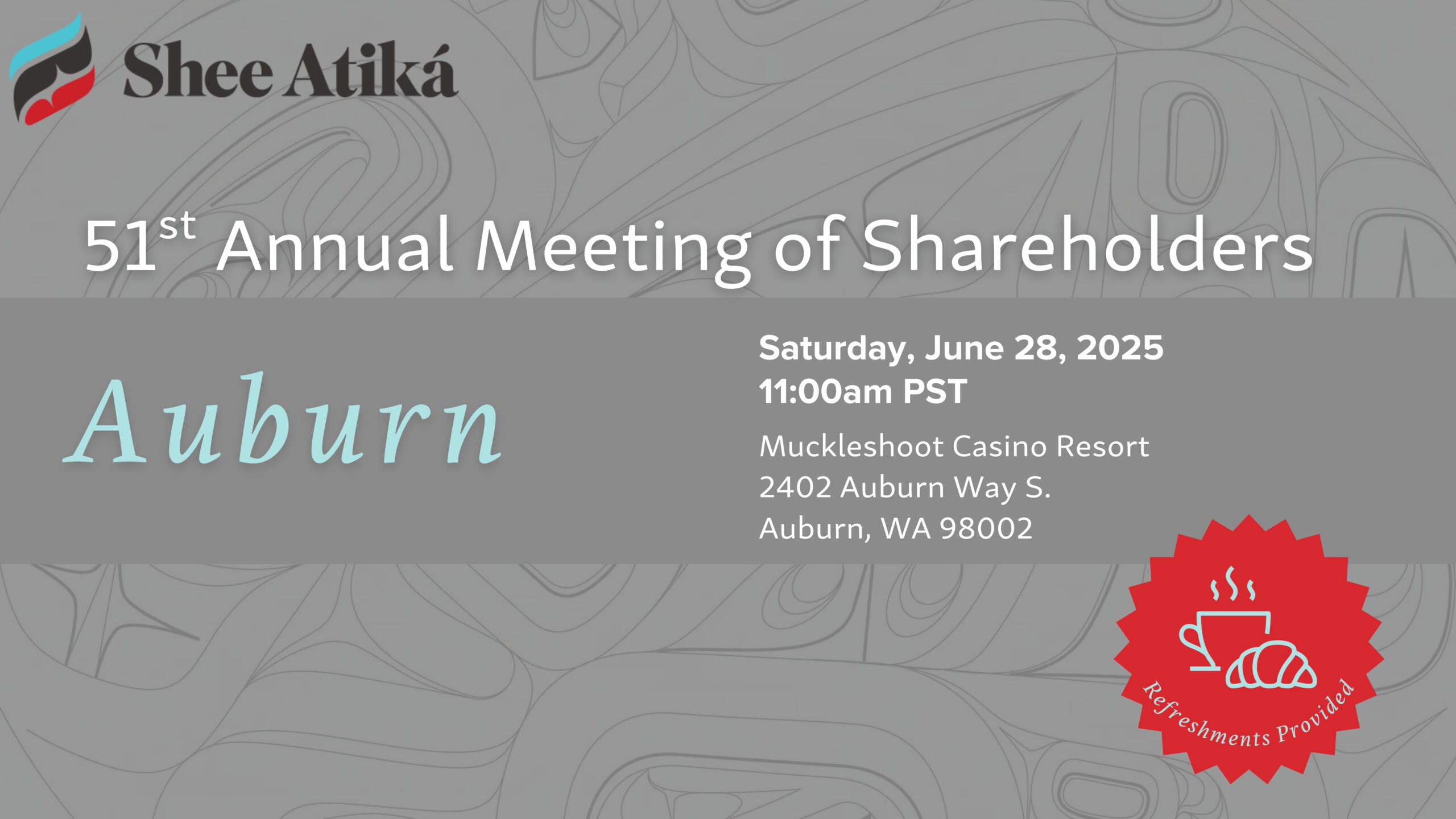 Our 2025 annual meeting will be held at the Muckleshoot Casino Resort on Saturday, June 28, 2025, in Auburn, Washington. At this time, we plan to hold the meeting in-person and via livestream so that all shareholders have an opportunity to watch—more details to come.
